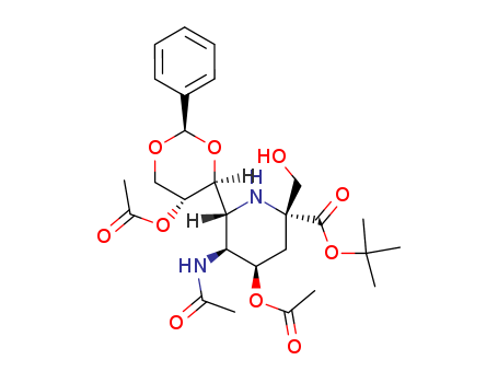 - Synonyms:tert-butyl 5-acetamido-4,8-di-O-acetyl-2-amino-2-N,6-anhydro-7,9-O-benzylidene-2,3,5-trideoxy-2-C-(hydroxymethyl)-D-erythro-L-allo-nononate