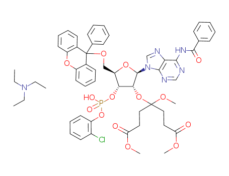 triethylammonium salt of 2'-O-(3-methoxy-1,5-dicarbomethoxypentanyl)-5'-O-pixyl-3'-O-(o-chlorophenyl)-phosphate-6-N-benzoyladenosine(99272-67-0)