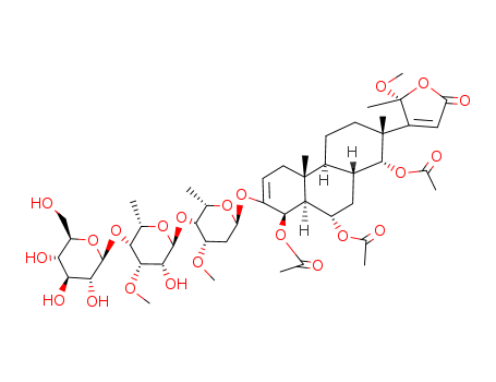 - Synonyms:2(5H)-Furanone,5-methoxy-5-methyl-4-[1,8,9-tris(acetyloxy)-7-[(O-b-D-glucopyranosyl-(1®4)-O-6-deoxy-3-O-methyl-a-L-talopyranosyl-(1®4)-2,6-dideoxy-3-O-methyl-a-L-lyxo-hexopyranosyl)oxy]-1,2,3,4,4a,4b,5,8,8a,9,10,10a-dodecahydro-2,4b-dimethyl-2-phenanthrenyl]-,[1R-[1a,2a(R*),4aa,4bb,8b,8aa,9a,10ab]]-; Tylophoroside
