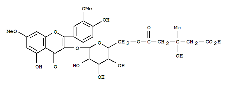 - Synonyms:Pentanedioicacid, 3-hydroxy-3-methyl-, 6'-ester with 3-(b-D-glucopyranosyloxy)-5-hydroxy-2-(4-hydroxy-3-methoxyphenyl)-7-methoxy-4H-1-benzopyran-4-one;Viscumneoside IV