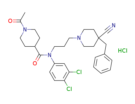 - Name: 1-Acetyl-N-[3-(4-benzyl-4-cyano-1-piperidinyl)propyl]-N-(3,4-dichlorophenyl)-4-piperidinecarboxamide Hydrochloride