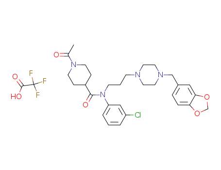 - Name: 1-Acetyl-N-(3-chlorophenyl)-N-[3-(4-piperonyl-1-piperazinyl)propyl]-4-piperidinecarboxamide Trifluoroacetate