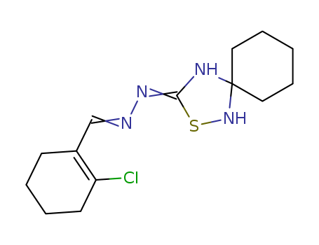 - Name: 1-Cyclohexene-1-carboxaldehyde, 2-chloro-, 2-thia-1,4-diazaspiro[4.5]dec-3-en-3-ylhydrazone