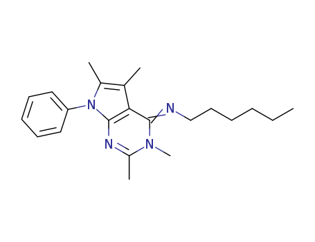 - Name: 1-Hexanamine, N-(3,7-dihydro-2,3,5,6-tetramethyl-7-phenyl-4H-pyrrolo[2,3-d]pyrimidin- 4-ylidene)-