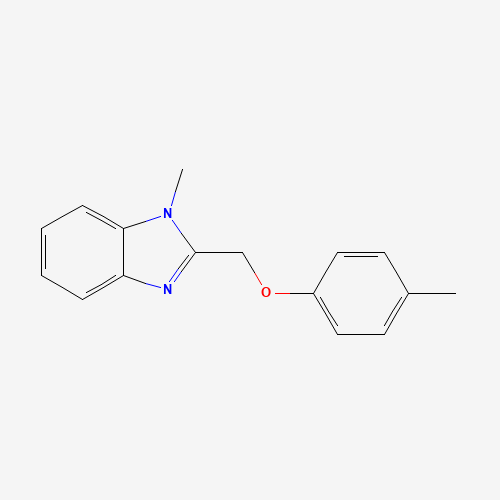 - Synonyms:300852-43-1;1-methyl-2-[(4-methylphenoxy)methyl]-1H-1,3-benzodiazole;1-Methyl-2-p-tolyloxymethyl-1H-benzoimidazole;1-methyl-2-[(4-methylphenoxy)methyl]benzimidazole;MLS001206554;1-methyl-2-((p-tolyloxy)methyl)-1H-benzo[d]imidazole;CHEMBL1529507;DTXSID801322344;HMS2837O22;STK739491;AKOS000649394;SMR000523340;UPCMLD0ENAT0500-4333:001;SR-01000322604;SR-01000322604-1;Z56760350;1-methyl-2-[(4-methylphenoxy)methyl]-1H-benzimidazole;F1216-0039