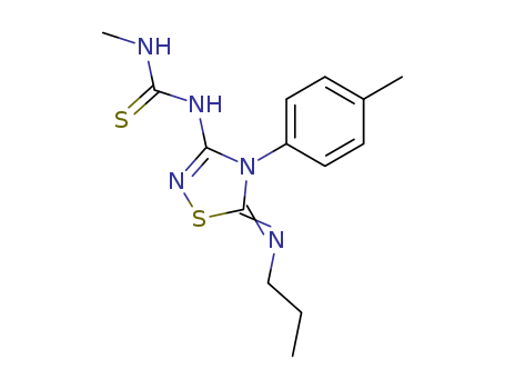- Synonyms:1-Methyl-3-{5-[(E)-propylimino]-4-p-tolyl-4,5-dihydro-[1,2,4]thiadiazol-3-yl}-thiourea