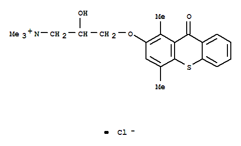 - Synonyms:1-Propanaminium,3-[(1,4-dimethyl-9-oxo-9H-thioxanthen-2-yl)oxy]-2-hydroxy-N,N,N-trimethyl-,chloride (9CI); 9H-Thioxanthene, 1-propanaminium deriv.; WB 4760
