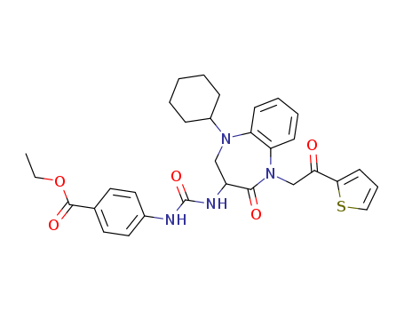 1-[1-(2-thenoylmethyl)-2-oxo-5-cyclohexyl-1,3,4,5-tetrahydro-2H-1,5-benzodiazepin-3-yl]-3-(4-ethoxycarbonylphenyl)urea(209222-90-2)