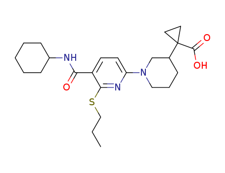 1-[1-[5-(cyclohexyl-carbamoyl)-6-propylsulfanyl-pyridin-2-yl]-3-piperidyl]cyclopropane-1-carboxylic acid(1024034-13-6)