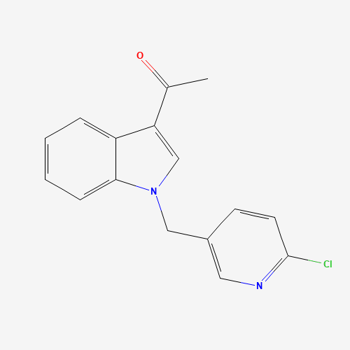 - Synonyms:886361-82-6;1-{1-[(6-Chloro-3-pyridinyl)methyl]-1H-indol-3-yl}-1-ethanone;1-(1-((6-Chloropyridin-3-yl)methyl)-1H-indol-3-yl)ethanone;1-[1-[(6-chloropyridin-3-yl)methyl]indol-3-yl]ethanone;1-{1-[(6-chloropyridin-3-yl)methyl]-1H-indol-3-yl}ethan-1-one;1-(1-[(6-Chloro-3-pyridinyl)methyl]-1h-indol-3-yl)-1-ethanone;1-(1-((6-Chloropyridin-3-yl)methyl)-1H-indol-3-yl)ethan-1-one;MFCD06411614;AKOS005070581;CS-0330592;4Y-0825