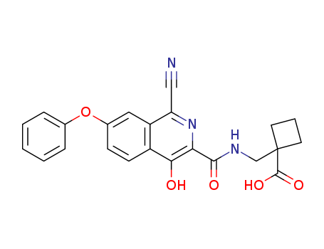 - Synonyms:1-{[(1-cyano-4-hydroxy-7-phenoxyisoquinoline-3-carbonyl)amino]methyl}cyclobutanecarboxylic acid