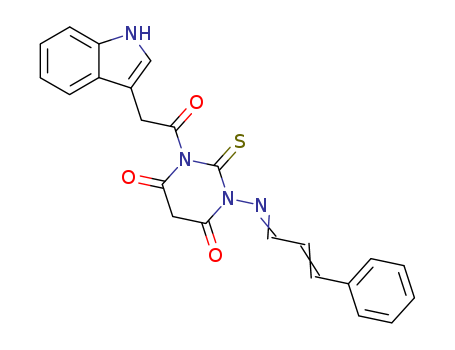 - Synonyms:4,6(1H,5H)-Pyrimidinedione,dihydro-1-(1H-indol-3-ylacetyl)-3-[(3-phenyl-2-propenylidene)amino]-2-thioxo-(9CI)