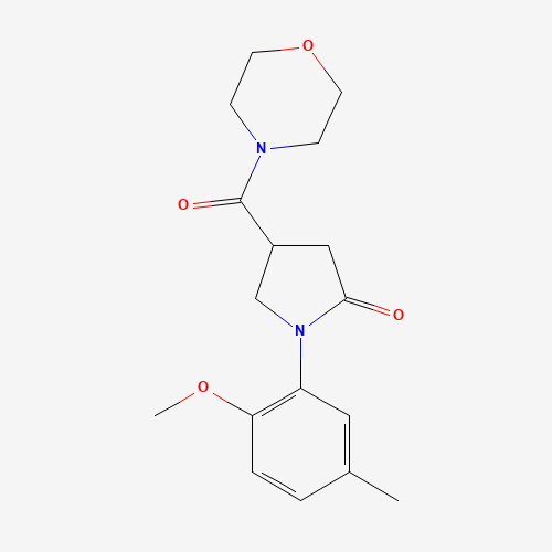 - Synonyms:925889-70-9;1-(2-Methoxy-5-methylphenyl)-4-(4-morpholinylcarbonyl)-2-pyrrolidinone;DTXSID501154865;1-(2-METHOXY-5-METHYLPHENYL)-4-(MORPHOLINOCARBONYL)-2-PYRROLIDINONE;AKOS008482084;1-(2-methoxy-5-methylphenyl)-4-(morpholin-4-ylcarbonyl)pyrrolidin-2-one;1-(2-methoxy-5-methylphenyl)-4-(morpholine-4-carbonyl)pyrrolidin-2-one