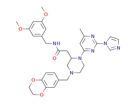 1-[2-(1H-imidazol-1-yl)-6-methylpyrimidin-4-yl]-N-[(3,5-dimethoxyphenyl)methyl]-4-[(1,4-benzodioxan-6-yl)methyl]piperazine-2-acetamide(212642-55-2)