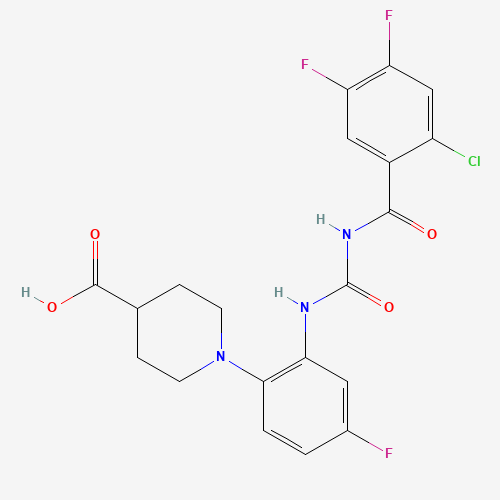 - Name: 1-(2-((((2-Chloro-4,5-difluorophenyl)carbonyl)carbamoyl)amino)-4-fluorophenyl)piperidine-4-carboxylic acid