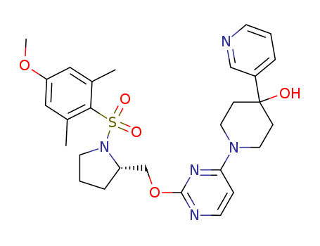 1-[2-[[(2S)-1-(4-methoxy-2,6-dimethylphenyl)sulfonyl-2-pyrrolidinyl]methoxy]-4-pyrimidinyl]-4-(3-pyridyl)-4-piperidinol(1224584-46-6)
