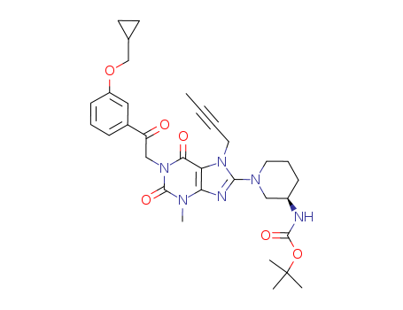 1-[2-(3-cyclopropylmethoxy-phenyl)-2-oxo-ethyl]-3-methyl-7-(2-butyn-1-yl)-8-[(R)-3-(tert.-butyloxycarbonylamino)-piperidin-1-yl]-xanthine(863654-55-1)