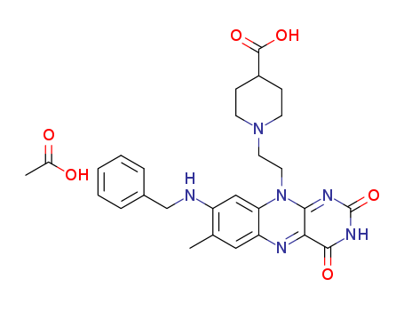 - Synonyms:1-[2-(8-benzylamino-7-methyl-2,4-dioxo-3,4-dihydrobenzo[g]pteridin-10(2H)-yl)ethyl]piperidine-4-carboxylic acid acetate