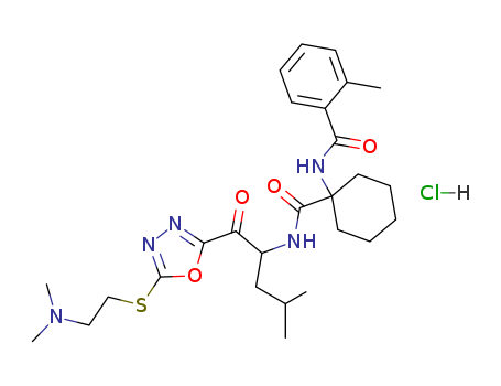 - Name: 1-(2-methylbenzoylamino)cyclohexyl-N-[1-[5-(2-dimethylaminoethylthio)-1,3,4-oxadiazol-2-yl]-4-methyl-1-oxo-2-pentyl]carboxamide hydrochloride