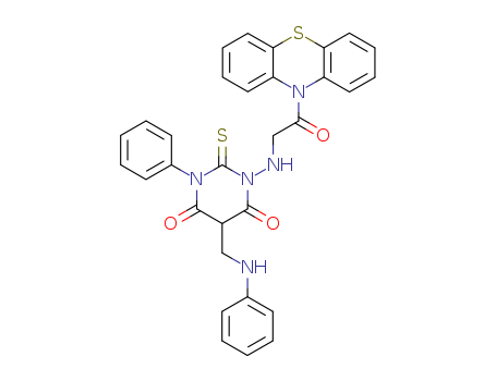 1-{[2-oxo-2-(10H-phenothiazin-10-yl)ethyl]amino}-3-phenyl-5-[(phenylamino)methyl]-2-thioxodihydropyrimidine-4,6(1H,5H)-dione(141177-49-3)