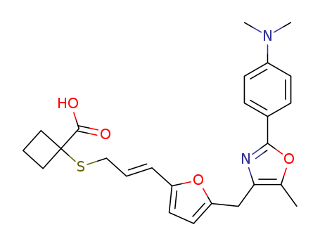 1-((2E)-3-(5-(5-methyl-2-(4-dimethylaminophenyl)oxazol-4-ylmethyl)furan-2-yl)-2-propenylthio)-cyclobutanecarboxylic acid(264874-32-0)
