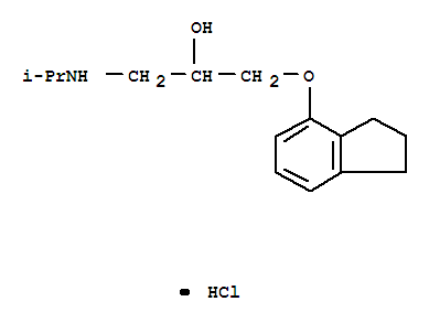 - Synonyms:2-Propanol,1-(4-indanyloxy)-3-(isopropylamino)-, hydrochloride (7CI,8CI); 2-Propanol,1-[(2,3-dihydro-1H-inden-4-yl)oxy]-3-[(1-methylethyl)amino]-, hydrochloride(9CI); 1-(Isopropylamino)-3-(4-indanoxy)-2-propanol hydrochloride;DL-1-(7-Indenyloxy)-3-isopropylaminopropane-2-ol hydrochloride; USVC 6524; USVC6524 hydrochloride; USVP 6524