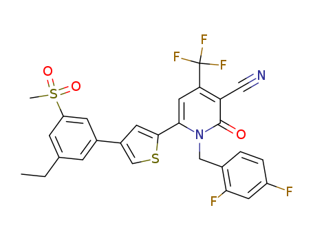 - Name: 1-(2,4-Difluoro-benzyl)-6-[4-(3-ethyl-5-methanesulfonyl-phenyl)-thiophen-2-yl]-2-oxo-4-trifluoromethyl-1,2-dihydro-pyridine-3-carbonitrile