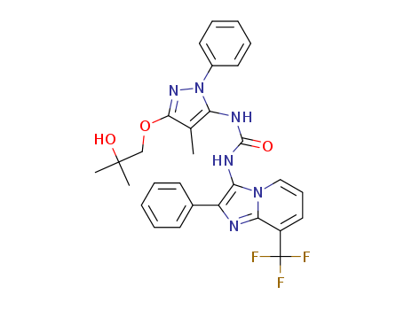 1-(3-(2-hydroxy-2-methylpropoxy)-4-methyl-1-phenyl-1H-pyrazol-5-yl)-3-(2-phenyl-8-(trifluoromethyl)imidazo[1,2-a]pyridin-3-yl)urea(1610529-14-0)