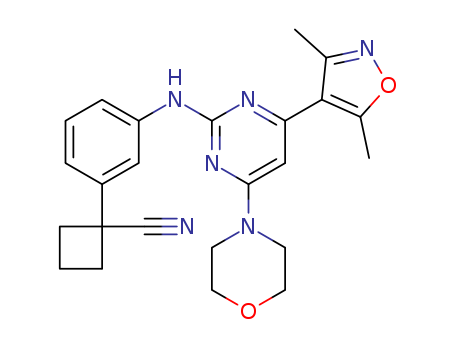 - Synonyms:1-{3-[4-(3,5-dimethyl-isoxazol-4-yl)-6-morpholin-4-yl-pyrimidin-2-ylamino]-phenyl}-cyclobutanecarbonitrile