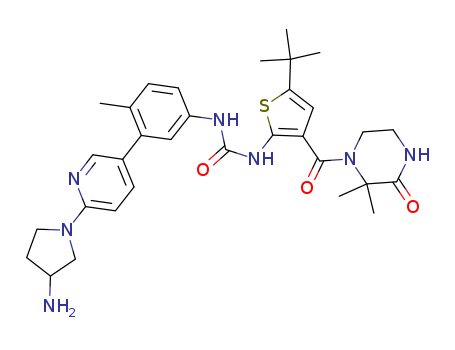 1-(3-(6-(3-aminopyrrolidin-1-yl)pyridin-3-yl)-4-methylphenyl)-3-(5-tert-butyl-3-(2,2-dimethyl-3-oxopiperazine-1-carbonyl)thiophen-2-yl)urea(1207876-54-7)