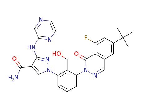 1-[3-(6-tert-Butyl-8-fluoro-1-oxo-1H-phthalazin-2-yl)-2-hydroxymethyl-phenyl]-3-(pyrazin-2-ylamino)-1H-pyrazole-4-carboxylic acid amide(1413062-13-1)