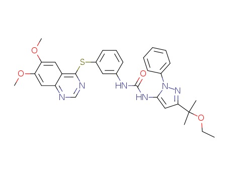 1-[3-(6,7-dimethoxyquinazolin-4-ylthio)phenyl]-3-[3-(2-ethoxypropan-2-yl)-1-phenyl-1H-pyrazol-5-yl]urea(1188910-01-1)