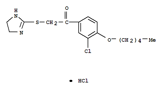 - Synonyms:Ethanone,1-[3-chloro-4-(pentyloxy)phenyl]-2-[(4,5-dihydro-1H-imidazol-2-yl)thio]-,monohydrochloride (9CI)