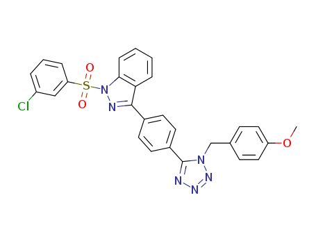 - Synonyms:1-(3-chlorophenylsulfonyl)-3-(4-(1-(4-methoxybenzyl)-1H-tetrazol-5-yl)phenyl)-1H-indazole