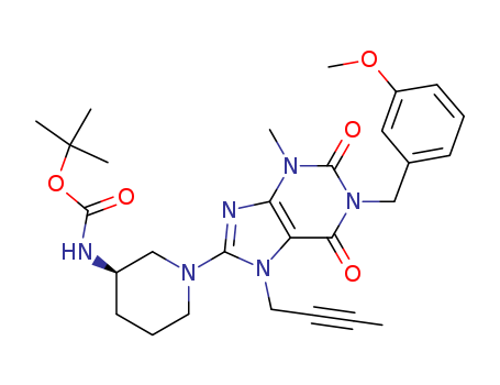 1-(3-methoxy-benzyl)-3-methyl-7-(2-butyn-1-yl)-8-[(R)-3-(tert.-butyloxycarbonylamino)-piperidin-1-yl]-xanthine(864779-32-8)