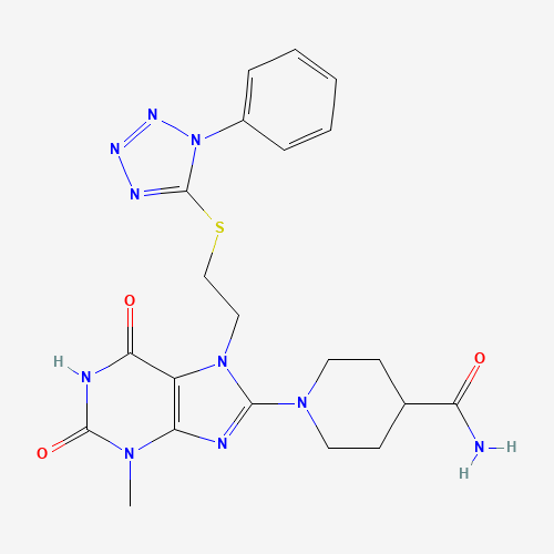 1-(3-methyl-2,6-dioxo-7-(2-((1-phenyl-1H-tetrazol-5-yl)thio)ethyl)-2,3,6,7-tetrahydro-1H-purin-8-yl)piperidine-4-carboxamide