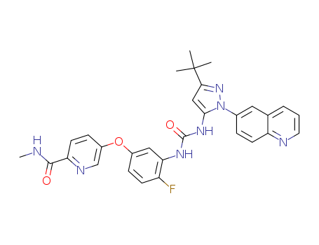 1-(3-tert-butyl-1-(quinolin-6-yl)-1H-pyrazol-5-yl)-3-(2-fluoro-5-(6-(methylcarbamoyl)pyridin-3-yloxy)phenyl)urea(1020226-12-3)