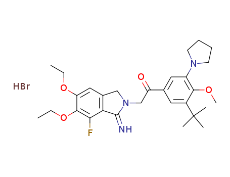 1-(3-tert-butyl-4-methoxy-5-(pyrrolidin-1-yl)-phenyl)-2-(5,6-diethoxy-7-fluoro-1-imino-1,3-dihydro-isoindol-2-yl)-ethanone hydrobromide(474550-73-7)