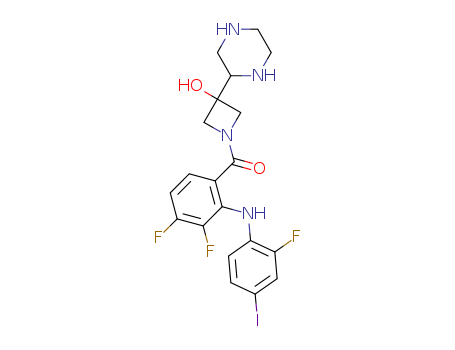 - Synonyms:1-({3,4-difluoro-2-[(2-fluoro-4-iodophenyl)amino]phenyl}carbonyl)-3-piperazin-2-ylazetidin-3-ol