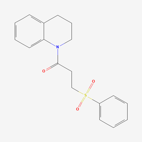 - Synonyms:881793-58-4;1-(3,4-dihydroquinolin-1(2H)-yl)-3-(phenylsulfonyl)propan-1-one;3-(benzenesulfonyl)-1-(3,4-dihydro-2H-quinolin-1-yl)propan-1-one;3-(benzenesulfonyl)-1-(1,2,3,4-tetrahydroquinolin-1-yl)propan-1-one;MLS000879163;F1821-0846;CHEMBL1450618;DTXSID401332600;HMS2962K05;STK324488;AKOS003362370;SMR000641209