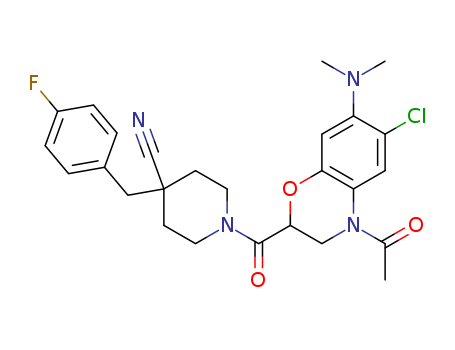 - Name: 1-(4-Acetyl-6-chloro-7-dimethylamino-3,4-dihydro-2H-benzo[1,4]oxazine-2-carbonyl)-4-(4-fluoro-benzyl)-piperidine-4-carbonitrile