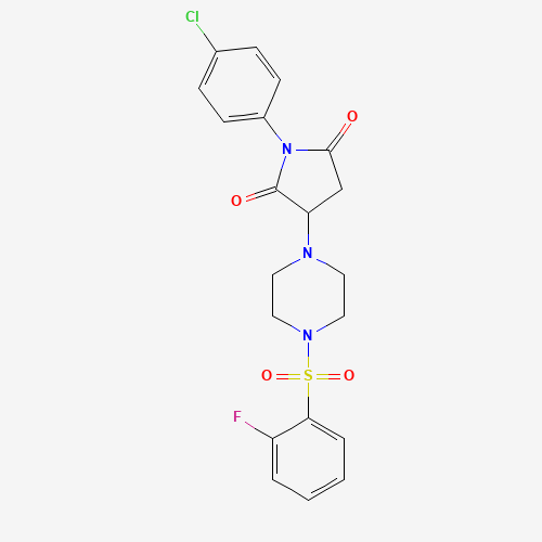 - Name: 1-(4-Chlorophenyl)-3-[4-(2-fluorophenyl)sulfonylpiperazin-1-yl]pyrrolidine-2,5-dione