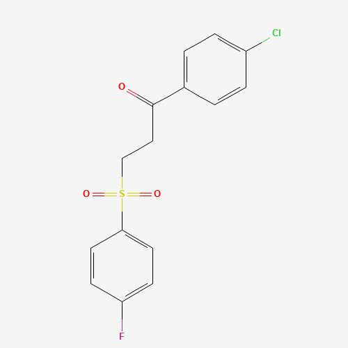 - Synonyms:477334-20-6;1-(4-CHLOROPHENYL)-3-((4-FLUOROPHENYL)SULFONYL)-1-PROPANONE;1-(4-chlorophenyl)-3-(4-fluorophenyl)sulfonylpropan-1-one;1-(4-chlorophenyl)-3-[(4-fluorophenyl)sulfonyl]-1-propanone;1-(4-Chlorophenyl)-3-((4-fluorophenyl)sulfonyl)propan-1-one;DTXSID701187725;AKOS005108352;JS-2531;1-(4-chlorophenyl)-3-(4-fluorobenzenesulfonyl)propan-1-one