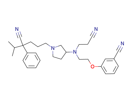 - Name: 1-[(4-Cyano-5-methyl-4-phenyl)hexyl]-3-[N-(2-cyanoethyl)-N-{2-(3-cyanophenoxy)ethyl}amino]pyrrolidine