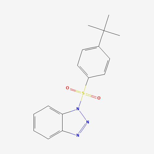- Synonyms:1-(4-tert-butylphenyl)sulfonylbenzotriazole;301314-63-6;1H-Benzotriazole, 1-[[4-(1,1-dimethylethyl)phenyl]sulfonyl]-;1-{[4-(1,1-dimethylethyl)phenyl]sulfonyl}-1H-1,2,3-benzotriazole;Oprea1_541196;Oprea1_835650;CHEMBL4062789;DTXSID801194101;AKOS000592289;AG-690/11837024;Z275365240;1-[[4-(1,1-Dimethylethyl)phenyl]sulfonyl]-1H-benzotriazole