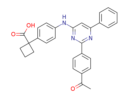 - Synonyms:1-{4-[2-(4-acetyl-phenyl)-6-phenyl-pyrimidin-4-ylamino]-phenyl}-cyclobutanecarboxylic acid