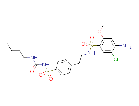 - Synonyms:Benzenesulfonamide,4-amino-N-(2-(4-((((butylamino)carbonyl)amino)sulfonyl)phenyl)ethyl)-5-chloro-2-methoxy;1-[4-[2-[(4-AMINO-5-CHLORO-2-METHOXY-PHENYL)SULFONYLAMINO]ETHYL]PHENYL ]SULFONYL-3-BUTYL-UREA;