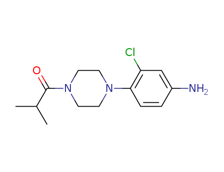 - Synonyms:AKOS BB-8663;1-[4-(4-AMINO-2-CHLORO-PHENYL)-PIPERAZIN-1-YL]-2-METHYL-PROPAN-1-ONE;ASISCHEM Y91390;1-(4-AMINO-2-CHLOROPHENYL)-4-(2-METHYL-1-OXOPROPYL)-PIPERAZINE;AKOS BB177;PIPERAZINE, 1-(4-AMINO-2-CHLOROPHENYL)-4-(2-METHYL-1-OXOPROPYL)-;ZERENEX ZX008702;[3-chloro-4-(4-isobutyrylpiperazin-1-yl)phenyl]amine