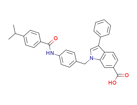 1-{[4-({[4-(1-methylethyl)phenyl]carbonyl}amino)phenyl]methyl}-3-phenyl-1H-indole-6-carboxylic acid(1198591-94-4)