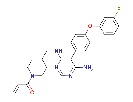 - Synonyms:1-[4-({6-amino-5-[4-(3-fluoro-phenoxy)-phenyl]-pyrimidin-4-ylamino}-methyl)-piperidin-1-yl]-propenone